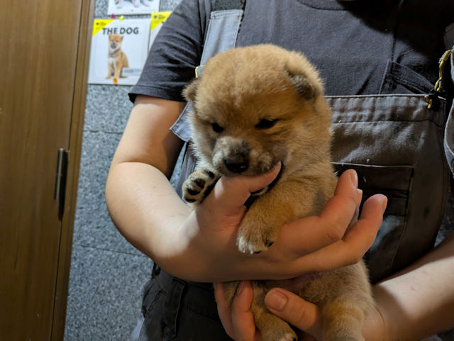 とっても柴犬らしいお顔立ちの赤メス。兄弟はいないので、ぷくぷくと巨大児になっております。