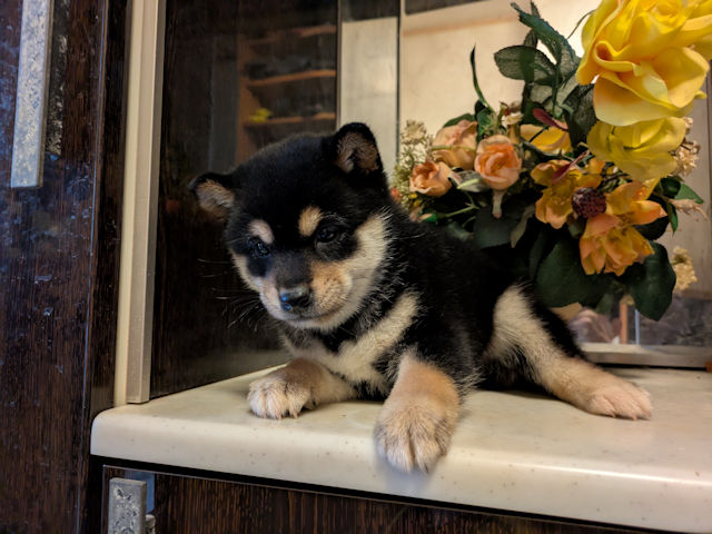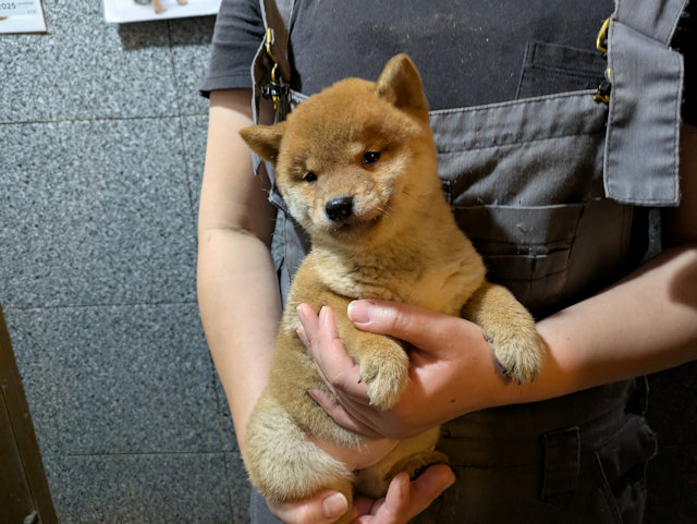 とっても柴犬らしいお顔立ちの赤メス。兄弟はいないので、ぷくぷくと巨大児になっております。